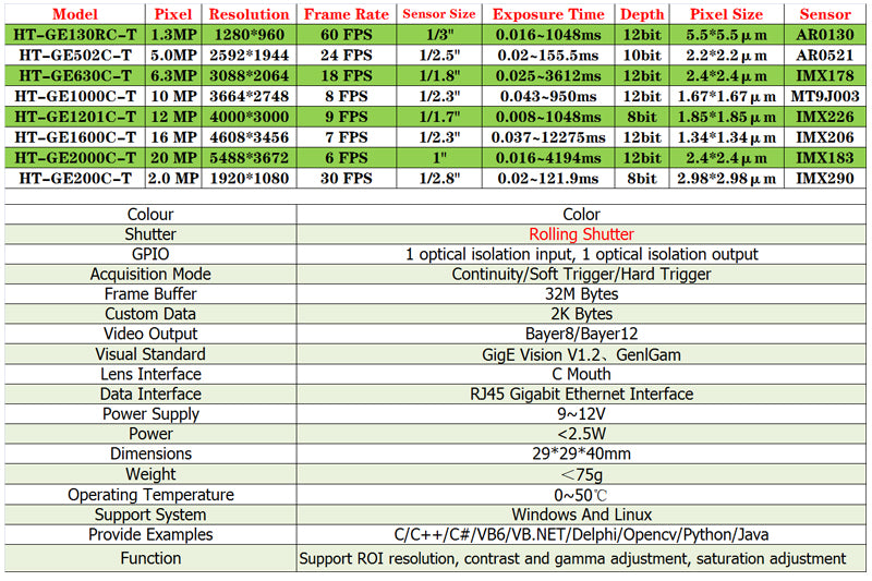 High Speed Gige Ethernet Industrial Machine Vision for image video Inspection, Color / Monochrome Digital Industrial Camera Rolling Shutter C Mouth Provide SDK Windows Linux