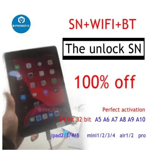 Unlock iPad SN with BT WF address 100% fix activation error, need re-activate your iPad in 10min.