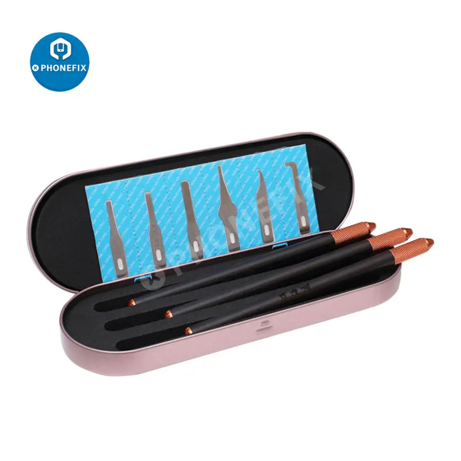 Features: 1# blade: mainly used to disassemble the small chip or remove the glue of the small chip. 2# blade: mainly used to disassemble large chips or remove the glue of large chips. 3# blade: mainly used for the disassembly and glue removal of double-layer or single-layer CPU chips. 4# blade: specially designed for Android fonts, and can also be used to disassemble other chips. 5# blade: used for chip hooking and scraping glue, suitable for small gaps and corners. 6# blade: mainly used to disassemble the Nand flash, baseband, WIFI IC.