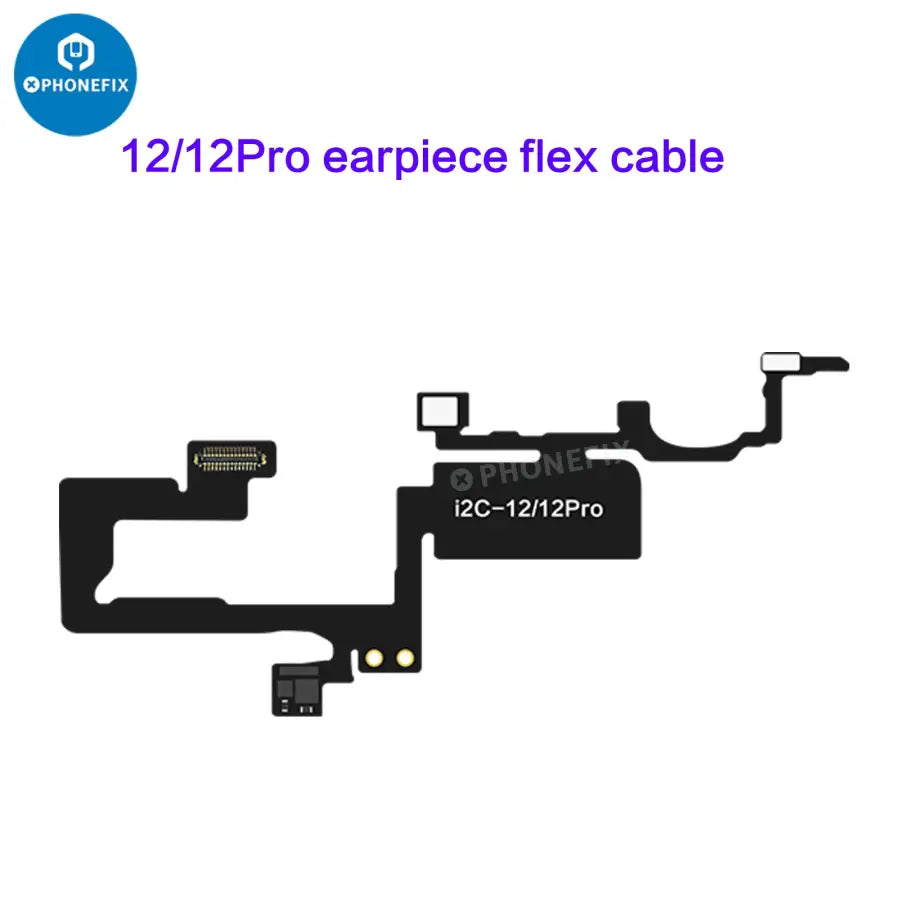 i2C Earpiece Receiver Flex Cable iPhone ear speaker proximity sensor flex cable for iPhone 8-15 Pro Max. i2c iPhone 8/SE2/SE3/8P/X/XS/XS MAX/XR/11/11 PRO/11 PRO MAX/12/12 Pro/12 Pro Max/12 Mini Earpiece repair Flex Cable. i2C Receiver Sensor Repair Test Flex Cable for repairing damaged iPhone earpiece and ambient light sensor flex cable, high quality iPhone earpiece with front sensor flex cable replacement accessories.