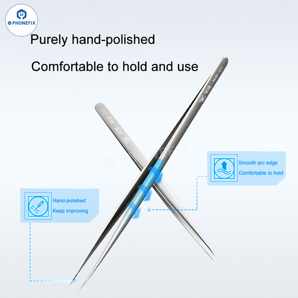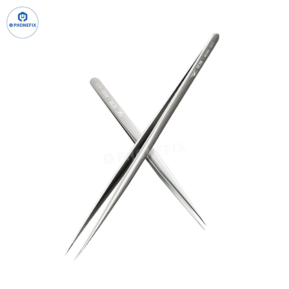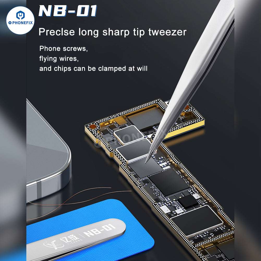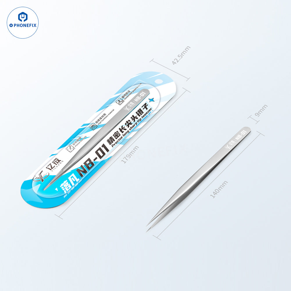 YICHENG NB-01 high precision long sharp tip tweezer phone computer PCB repair hand tools. Rust-proof, non-magnetic, and wear-resistant, widely used for screws, chips, and flying wire clamping.