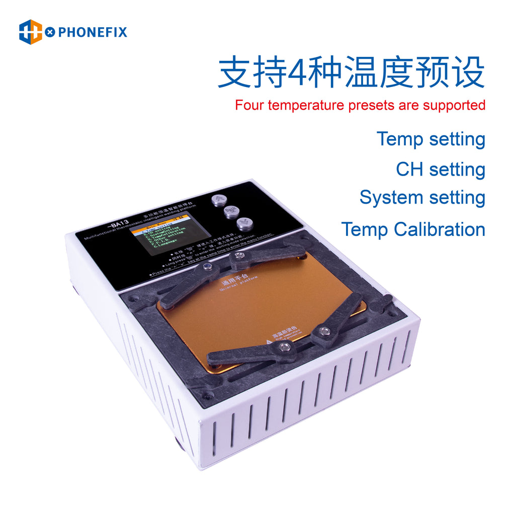 - PHONEFIX BA13 pre-heating station for iPhone X/XS/XS Max/11/11Pro/11 Pro Max/12/12 mini/12Pro/12 Pro Max/13/13mini/13 Pro/13 Pro Max/14/14 Plus/14 Pro/14 Pro Max/15/15 Plus/15 Pro/15 Pro Max/16/16 Plus/16 Pro/16 Pro Max motherboard soldering separating.