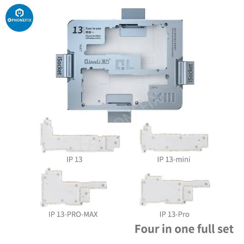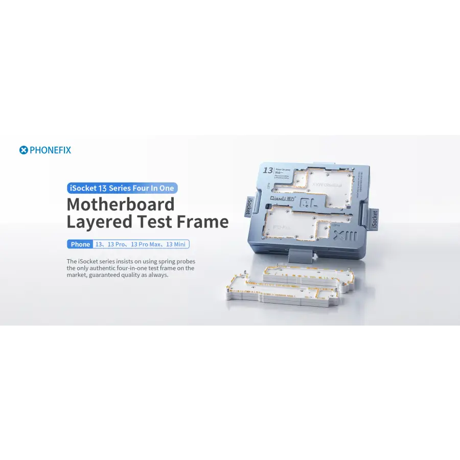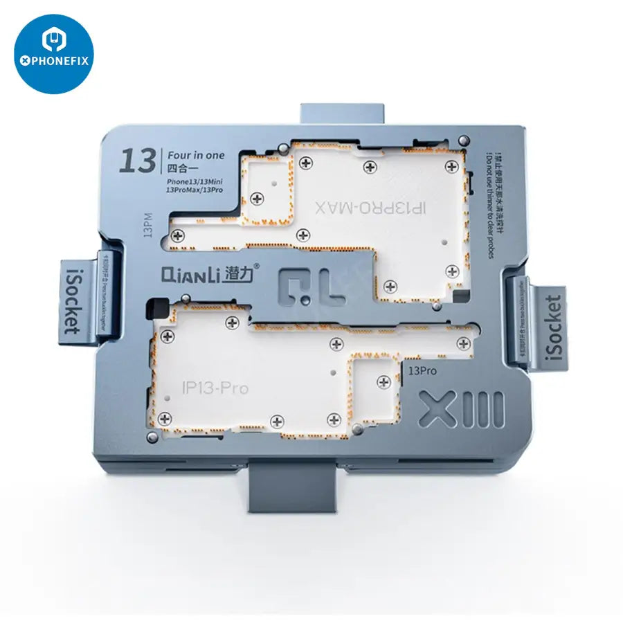 Qianli iSocket 4 in 1 motherboard test fixture for iPhone 13/13 Pro/13Pro Max/13 mini. Qianli iSocket Motherboard Layered Test Frame iPhone 13 Series MainBoard Layered Testing Detection Maintenance Fixture. QianLi iSocket For iPhone 13-13 Pro Max Logic Board Function Fast Test Holder Phone Repair Tool.