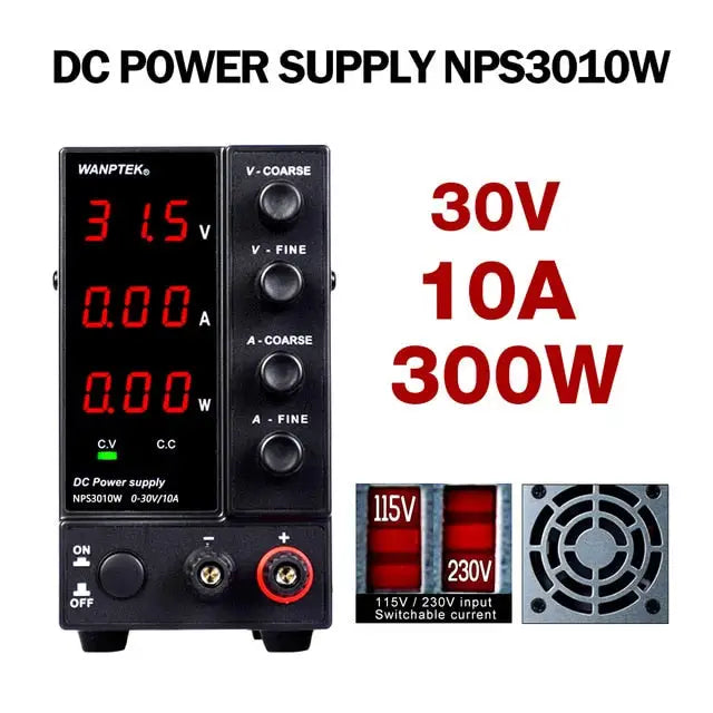 Wanptek laboratory DC power supply adjustable regulated switching power supply variable bench source 30V 10A voltage converter