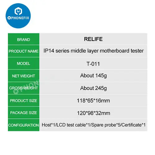 Features:1. Relife T-011 Middle layer motherboard tester, solve problems such as repeated lamination and delamination during the rework process, troublesome testing, etc., making motherboard testing simple and fast.